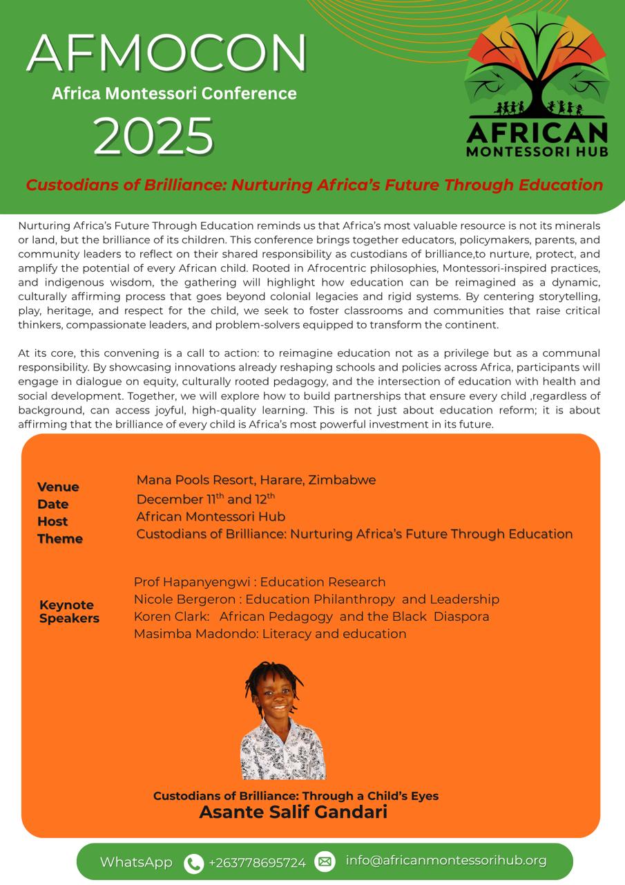 Play, curiosity, and creativity are essential drivers of children’s learning and development. Montessori education, with its child-centered approach, places these elements at the core of its methodology, empowering children to become independent, critical thinkers and lifelong learners. In Africa, where diverse educational challenges and opportunities exist, the Montessori approach offers a powerful framework for transforming learning environments and fostering innovation. This first-of-its-kind Africa Montessori Summit is a celebration of innovation in education through the lens of Montessori philosophy and its potential to revolutionize education in Africa. It will also be a platform to showcase other forward-thinking approaches in education that are driving the achievement of SDG4 in the region. It will convene learners, teachers, Montessori guides, Montessori parents, funders, policymakers, government representatives, NGOs, and other stakeholders to explore the role of Montessori education in shaping a bright, fun-filled future for Africa’s children.